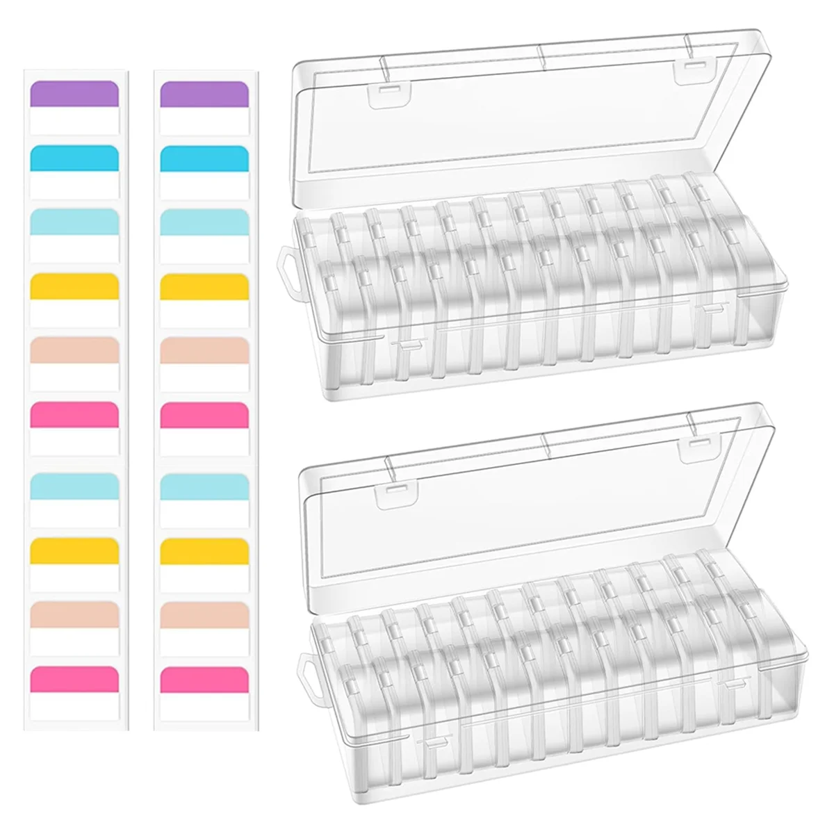 Коробка-органайзер для бисера ABGV, маленькие прямоугольные прозрачные контейнеры для хранения бисера, коробки с навесными крышками и набором этикеток, 2 шт.