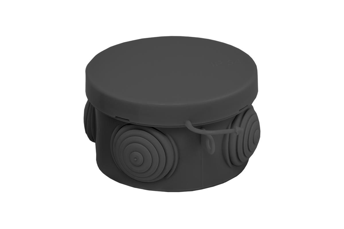 Коробка распаячная круглая, ⌀6.5 см, глубина 4 см, наружный монтаж, IP54, вводов:4, наличие сальников, черный, с крышкой, EKF КМР-040-038 (plc-kmr-040-038-b), КМР-040-038