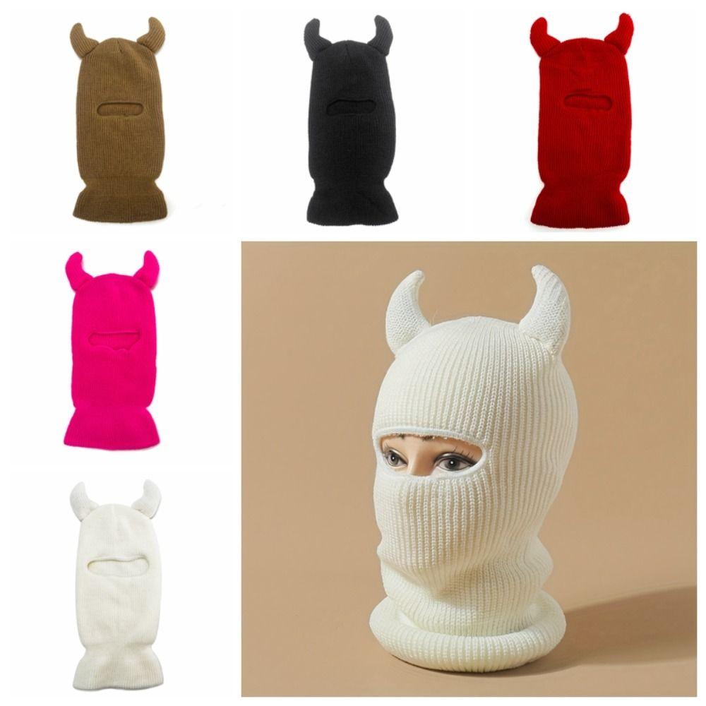 Коровий рог, коровий рог, вязаная шапка, модная теплая шейная шапка, ворсовая шапка, маска для верховой езды, зимний шарф