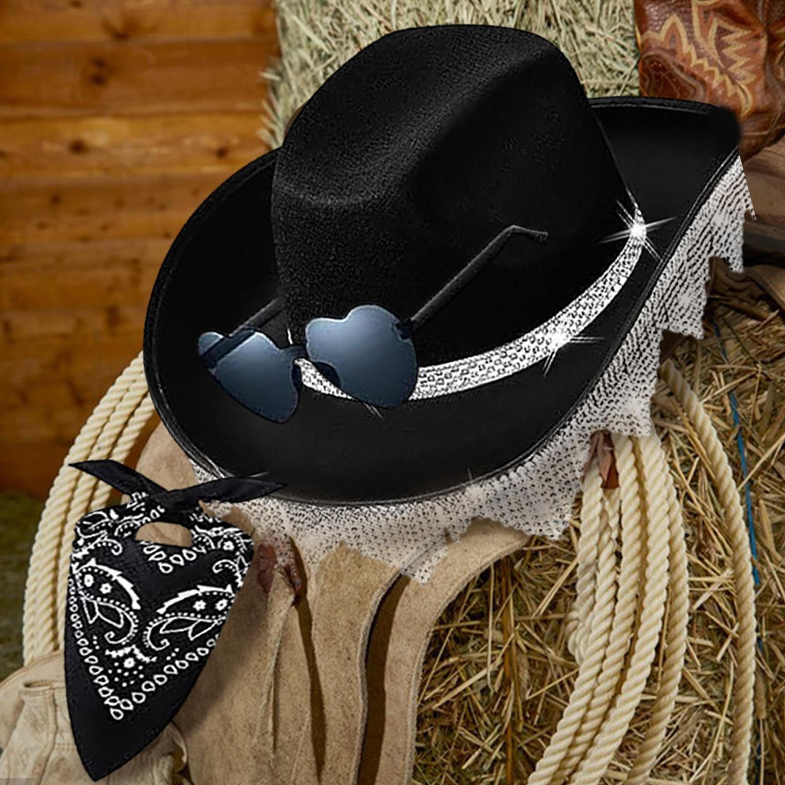Коровья шляпа с кисточками и стразами, бандана в стиле пастушки, широкие прочные очки для улицы