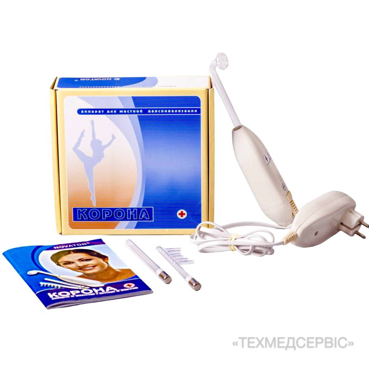 Дарсонваль "Корона" - портативний прилад для лікування високочастотним імпульсним струмом високої напруги і невеликої сили. Портативність приладу дозволяє використовувати його в домашніх умовах, в поліклініках, лікарнях. Електрод Рогатка, що йде в комплекті, можна ефективно використовувати на таких ділянках тіла як спина, живіт і шия.