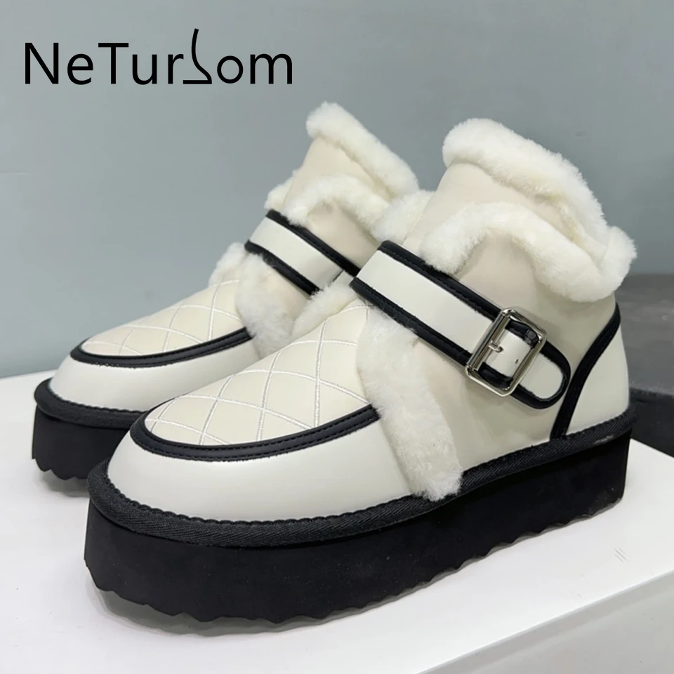 Новинка Зима 2023, утолщенные теплые зимние ботинки из шерсти, модная женская обувь на толстой подошве из хлопка, Удобная Нескользящая женская повседневная обувь