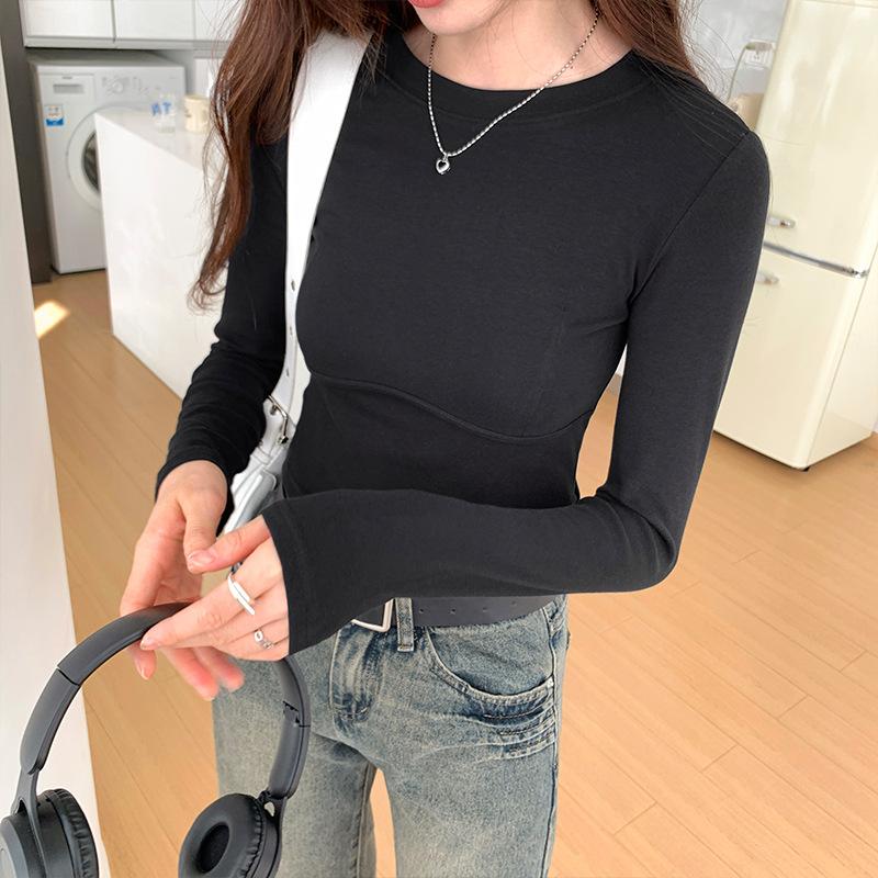 Короткая белая футболка с длинными рукавами на правом плече для женщин в начале осени, новая облегающая футболка с открытым пупком и топом Fishbone с высокой талией XL