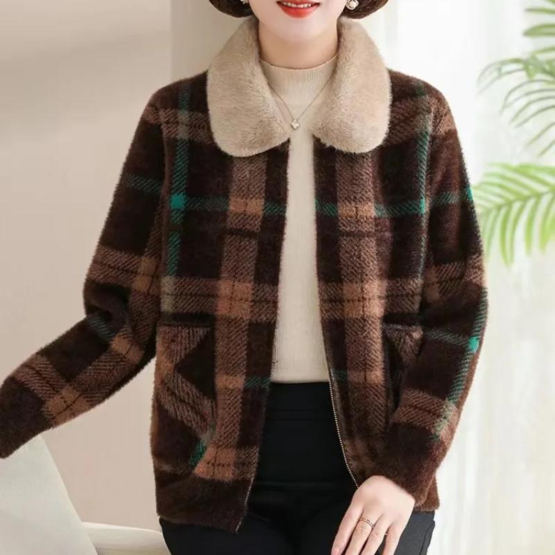 Короткая куртка для мамы на осень и зиму, модная куртка из искусственного норкового флиса в клетку с меховым воротником, теплая модная толстая верхняя часть M зелёный