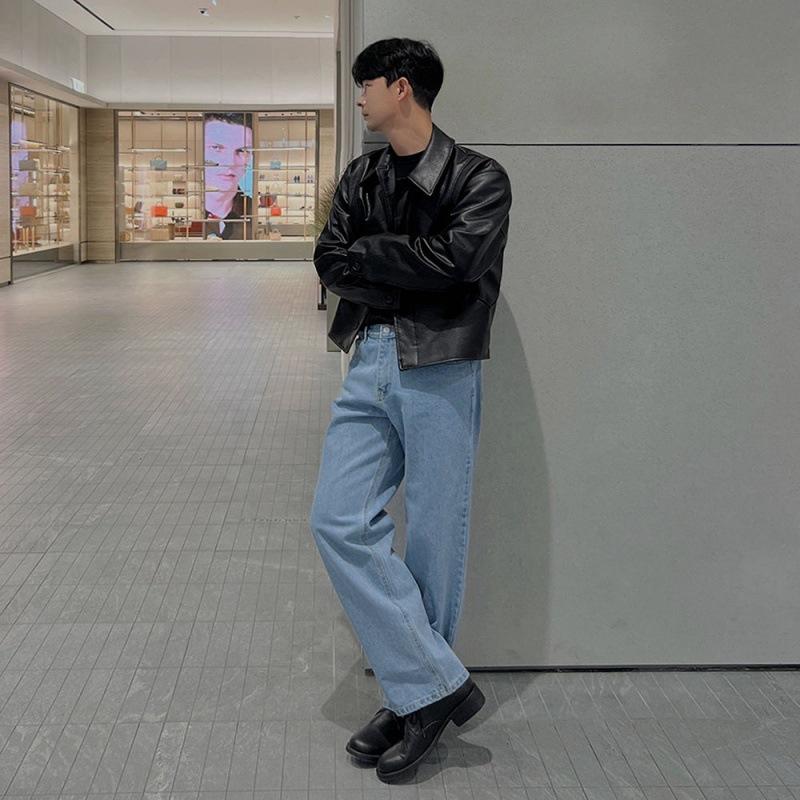 Короткая мотоциклетная кожаная куртка мужская осенняя новая корейская модная свободная кожаная куртка с лацканами M чёрный