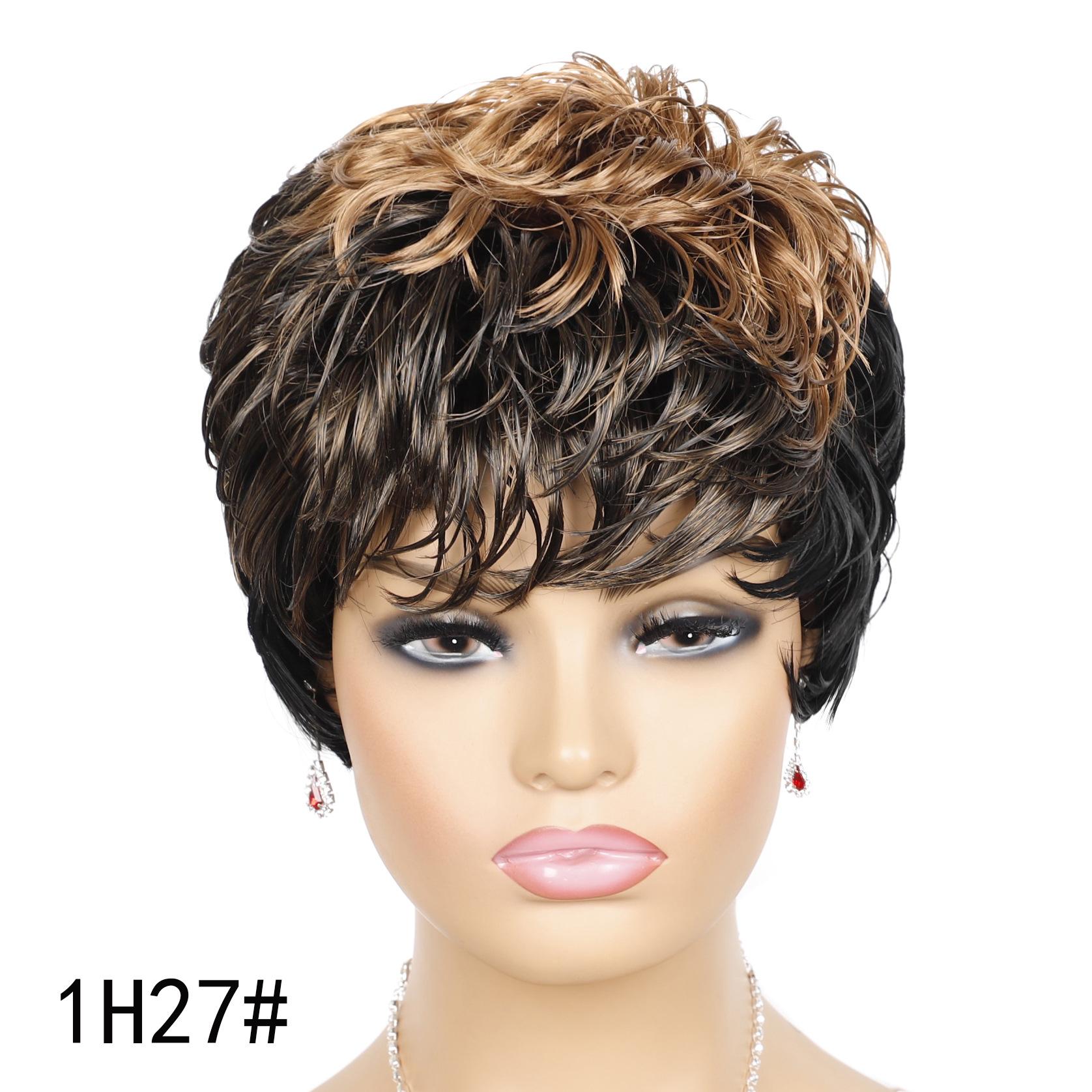 Короткие парики, женские натуральные вьющиеся синтетические волосы, черный, красный, коричневый парик с челкой, повседневный парик для косплея, парик из устойчивого к сердцу волокна коричневый/светлый
