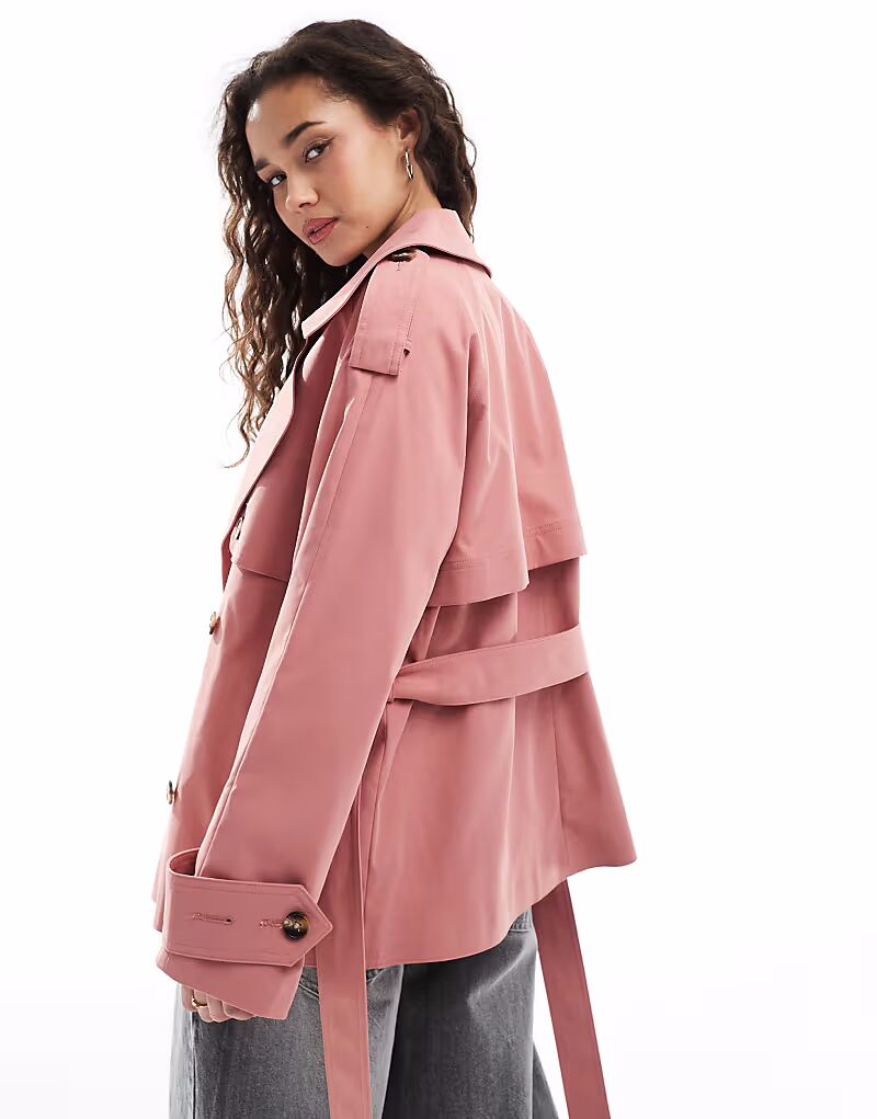 Короткий тренчкот ASOS DESIGN свободного кроя с поясом в цвете пыльно-розовый