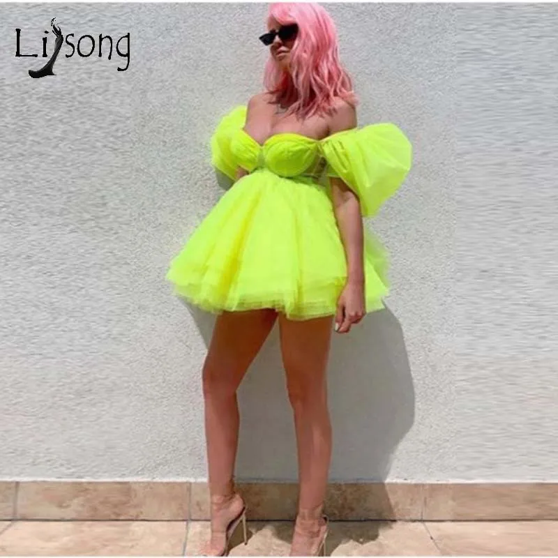 Короткое коктейльное платье-пачка ярко-зеленого цвета, мини-платье с открытыми плечами для выпускного вечера, пышные вечерние платья, 2019