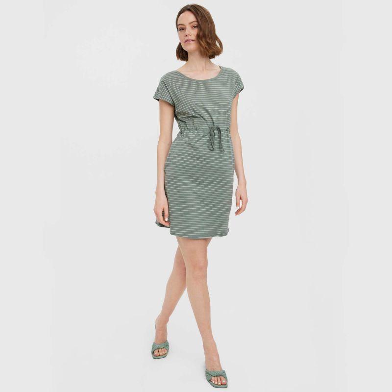 Короткое платье приталенного кроя из 100 % хлопка в полоску оливково-зеленого цвета для женщин VERO MODA