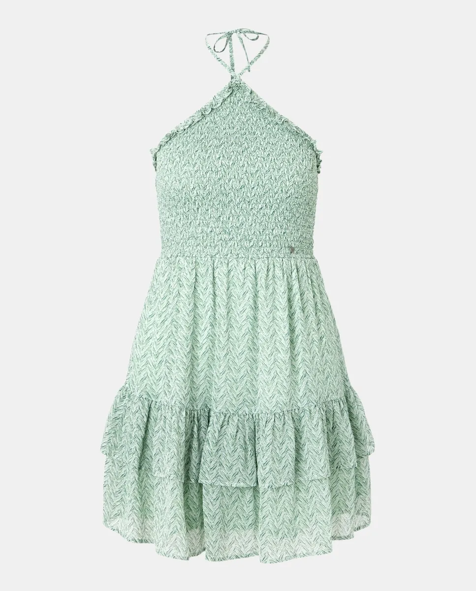 Короткое шифоновое платье без рукавов с бретелью через шею Green Coast, светло-зеленый