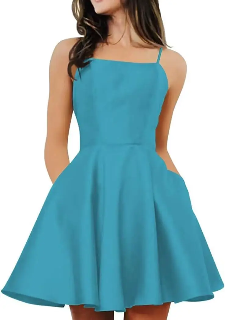 Короткое школьное платье для подростков, атласная тонкая мини-юбка трапециевидной формы с бретельками, торжественное элегантное вечернее танцевальное платье с карманами