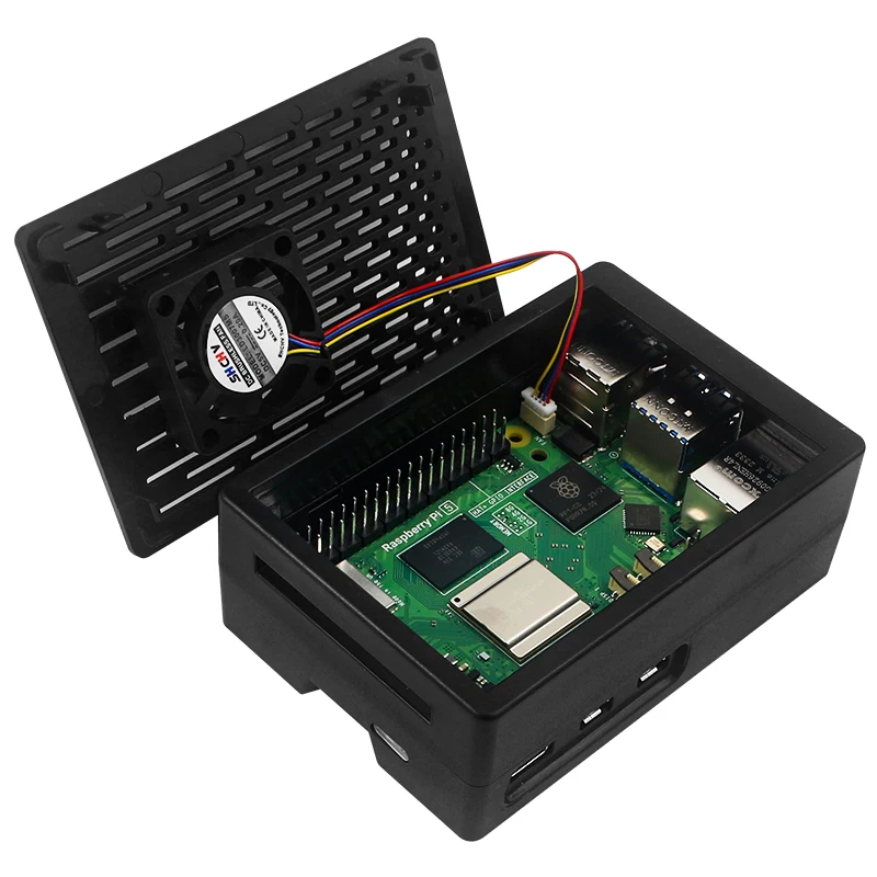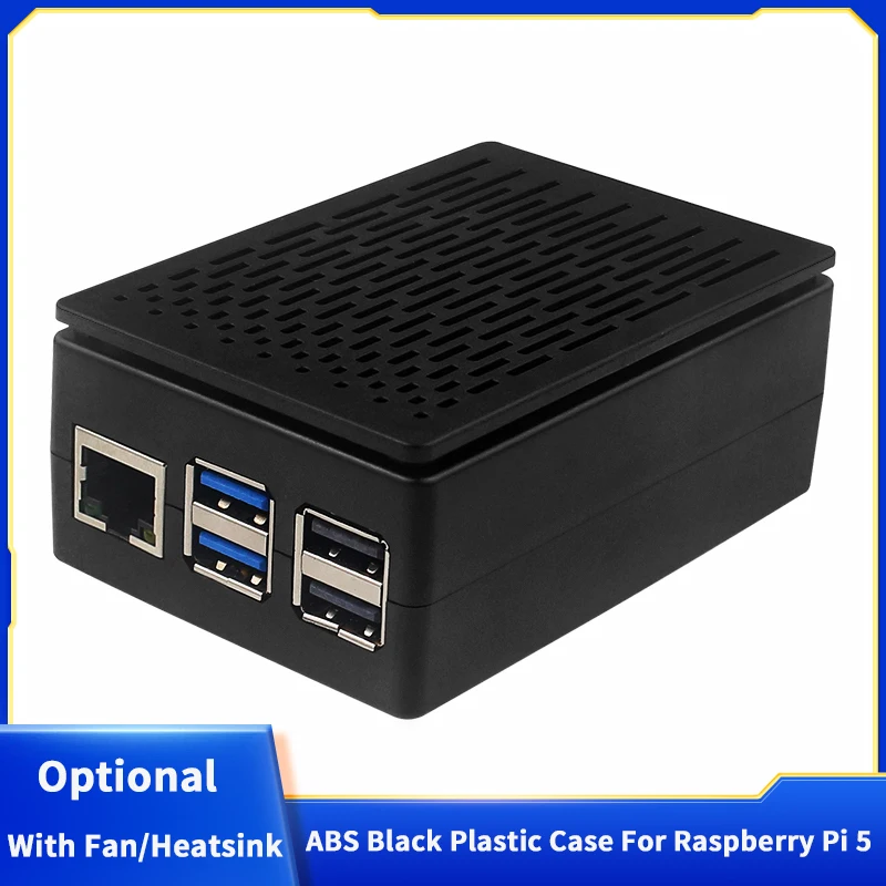 Корпус из АБС-пластика Raspberry Pi 5, черный пластиковый корпус с охлаждающим вентилятором ШИМ, защитная коробка для радиатора, опционально для Raspberry Pi 5