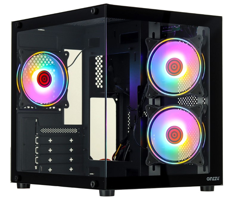 Корпус mATX Ginzzu V150 без БП, боковая и фронтальная панель из закалённого стекла, USB 3.0, USB 2.0, V150