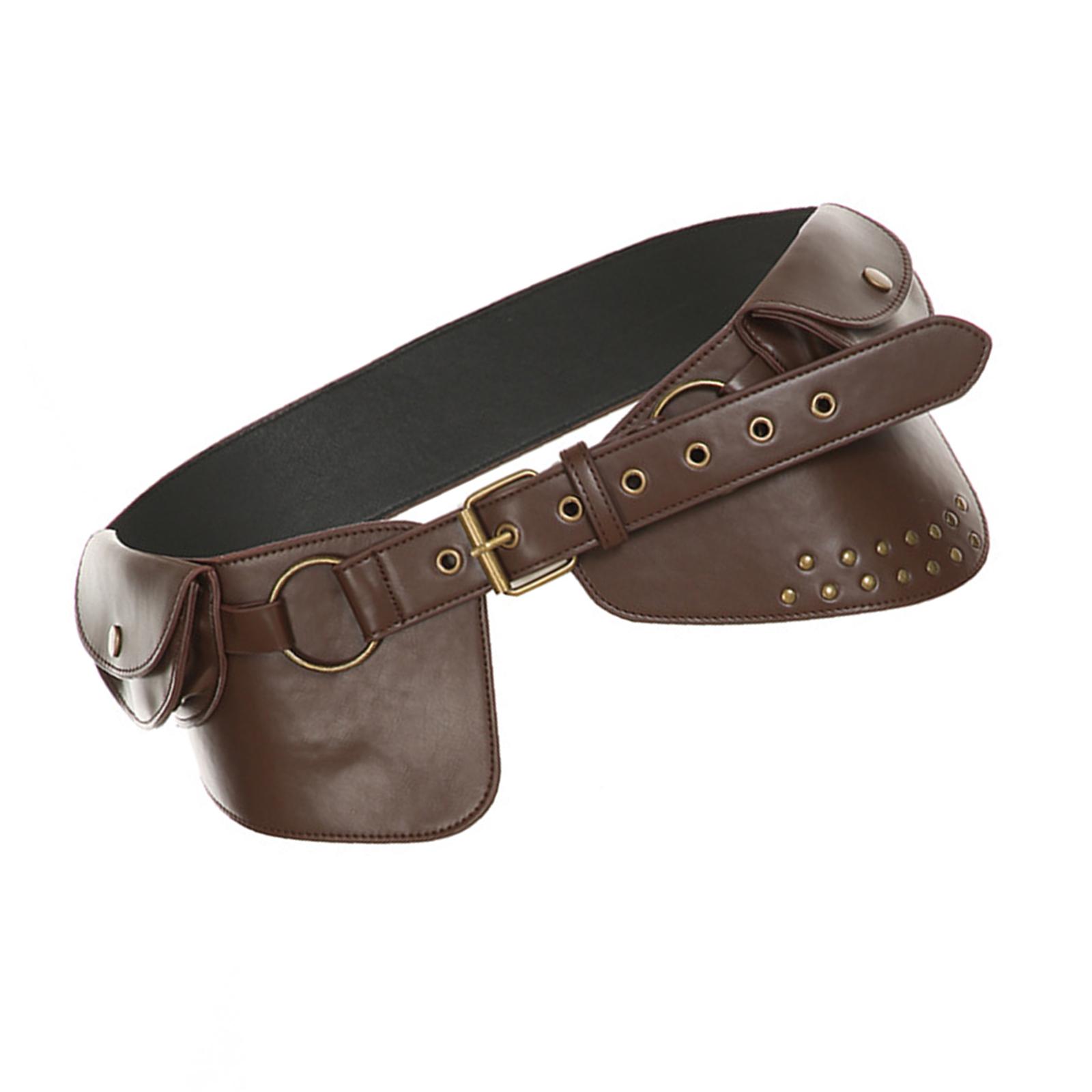Корсет с заклепками и заклепками, регулируемый пояс, поясная сумка, женский пояс-корсет, крутой пояс, поясной ремень в стиле панк, аксессуар для талии коричневый