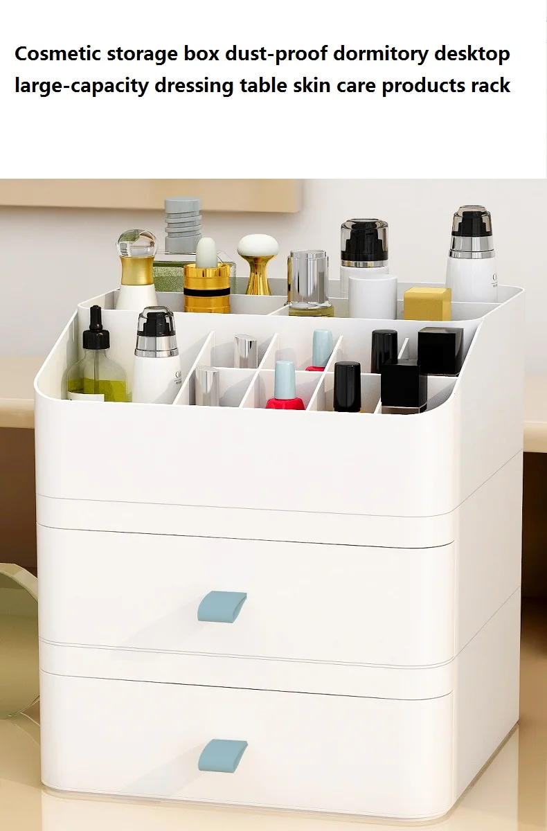 Косметическая коробка для хранения, Пыленепроницаемая, настольная, большая емкость, туалетный столик для ухода за кожей, стойка для продуктов