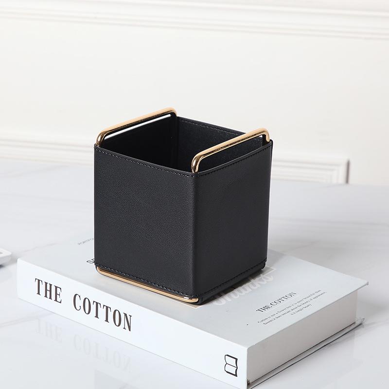 Косметичка и держатель для пульта дистанционного управления из скандинавской кожи: Простое настольное хранилище для украшений и ручек. чёрный