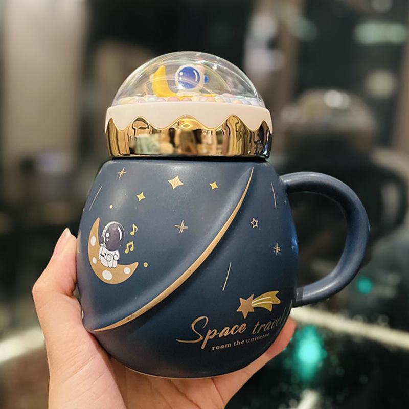 Космическая кружка серии «Астронавт» с крышкой и ложкой, керамическая парная чашка для воды, подарочный набор для девушки, подарок для парня