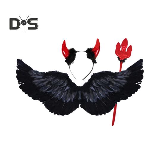 Косплей ангельские крылья для детей, набор крыльев ангела с повязкой на голову и волшебной палочкой, искусственные перья, ангельские крылья для косплея на Хэллоуин D