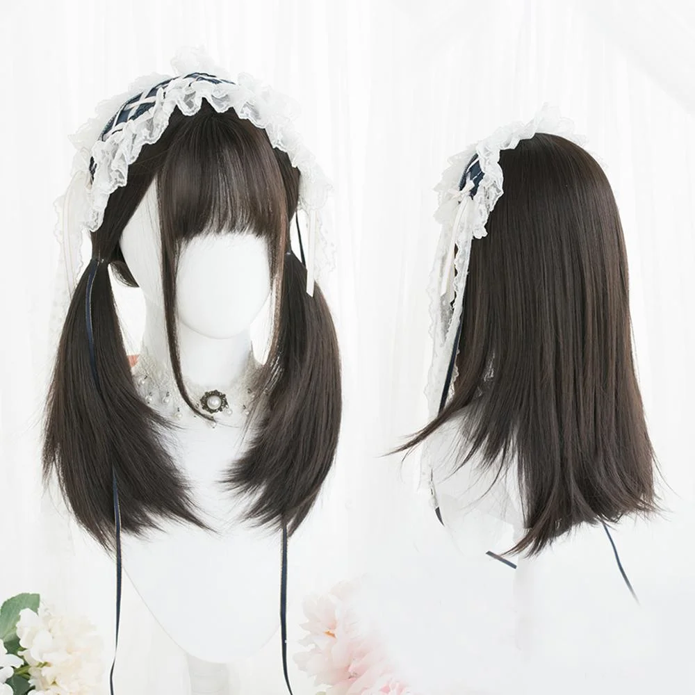 Косплей микс 51 см Лолита Япония милые Средние прямые волосы черные коричневые челки Омбре леди вечевечерние Синтетический косплей парик + ш...