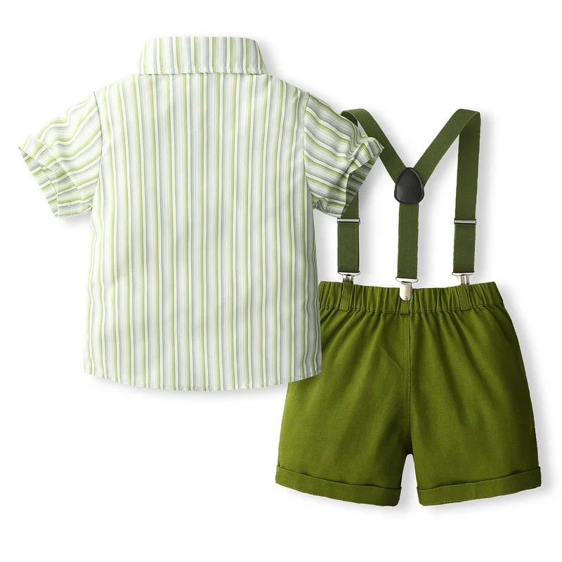Костюм Джентльмена для маленьких мальчиков, летняя одежда для младенцев 1-6 лет, полосатая рубашка с бантом для новорожденных + шорты на бретелях, официальная одежда для мальчиков на день рождения