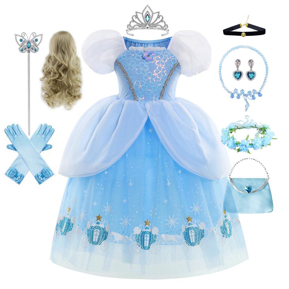 Костюм Золушки для девочек, очаровательное вечернее платье принцессы для девочек, вечернее бальное платье, платье на Хэллоуин