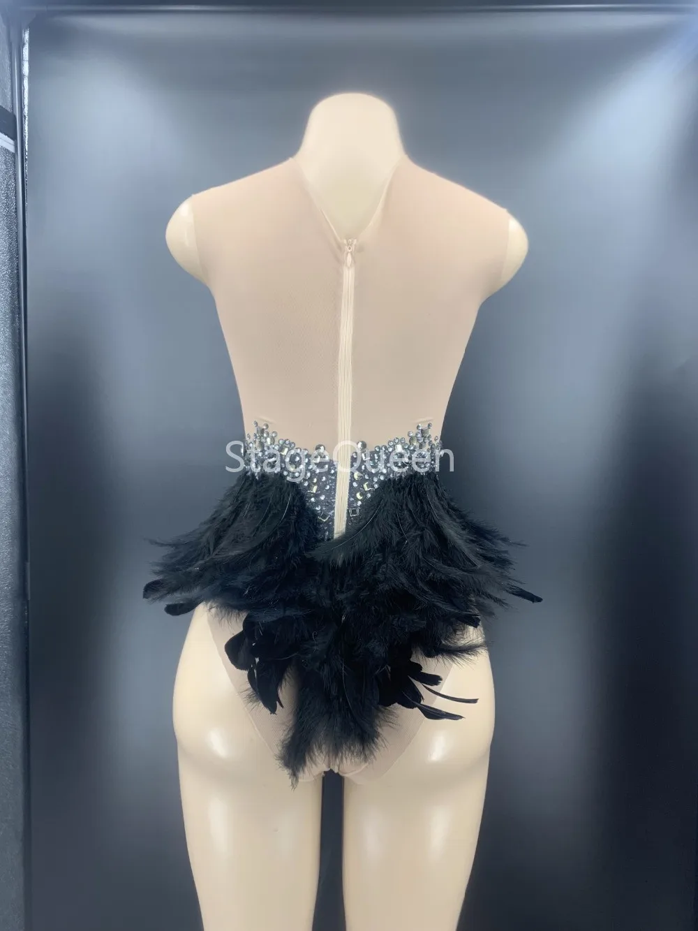 Костюм певицы Стразы, прозрачное черное платье с перьями, танцевальное праздничное платье, наряд, женские платья на день рождения, бар, выпу...
