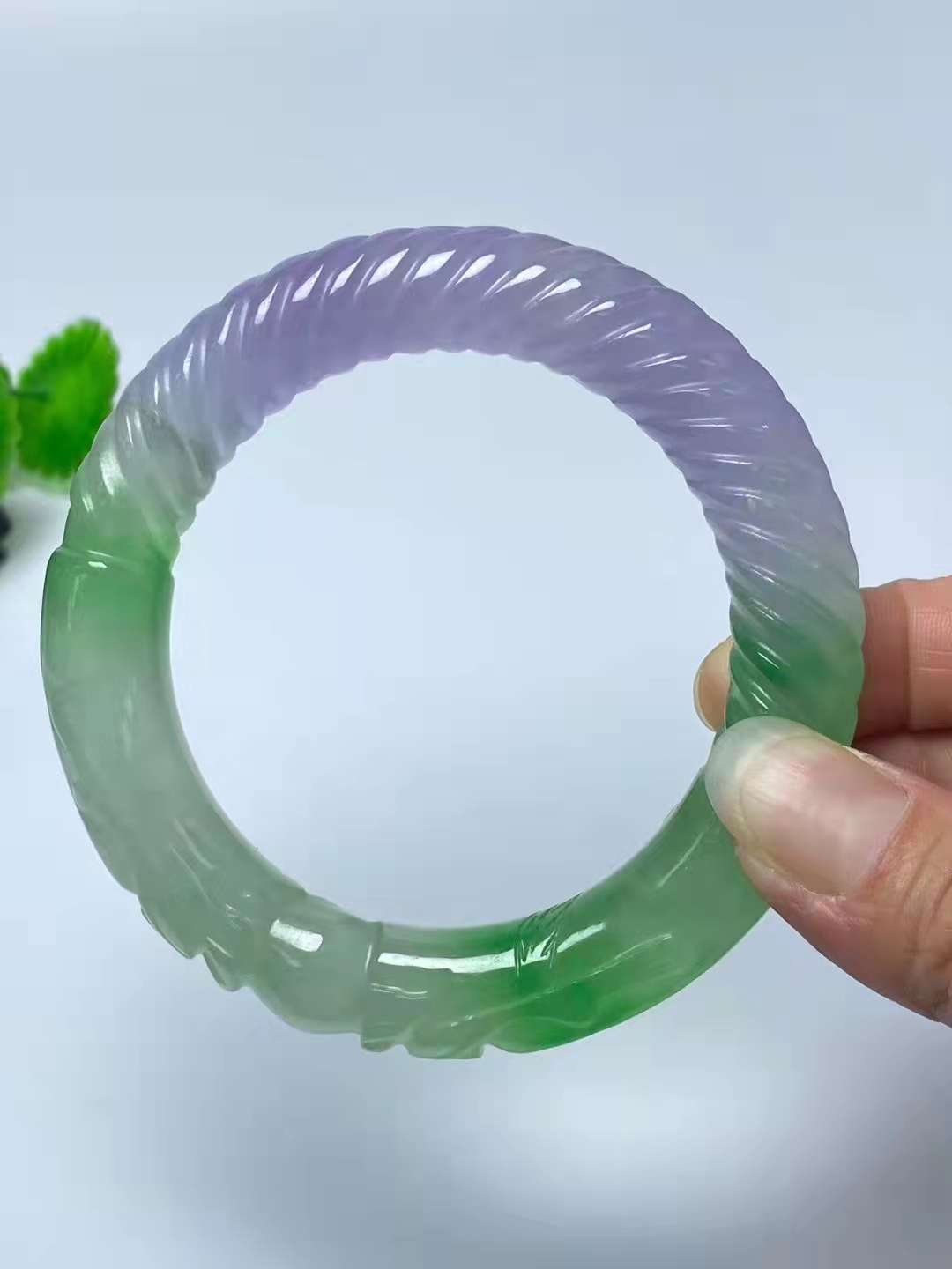 Real Myanmar emerald bangles Class A High Ice Light green floating purple Jade Bracelet Hand carved luck Handring Fine Jewelry