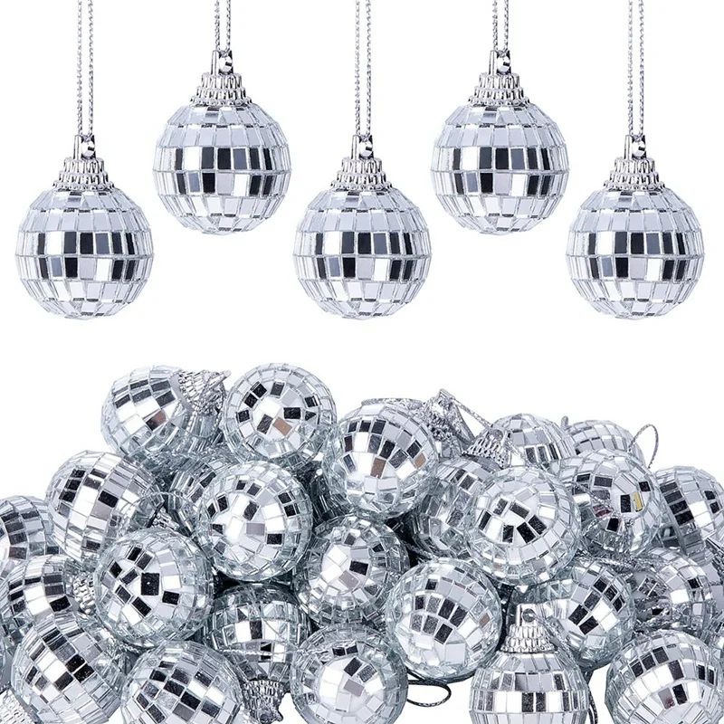 Зеркальный диско-шар, 1,2 дюйма, 60 шт., Серебристое стекло, яркий светоотражающий подвесной шар, украшение, топпер для торта для домашней сцены