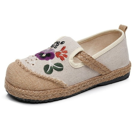 CYMMPU Flats Shoes Clearance Women s Color Matching Hand Embroidery Bag Heel Shoes Cotton Flat Shoes