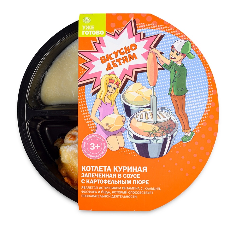 Котлета куриная запеченная в соусе с картофельным пюре, Вкусно Детям, Уже Готово