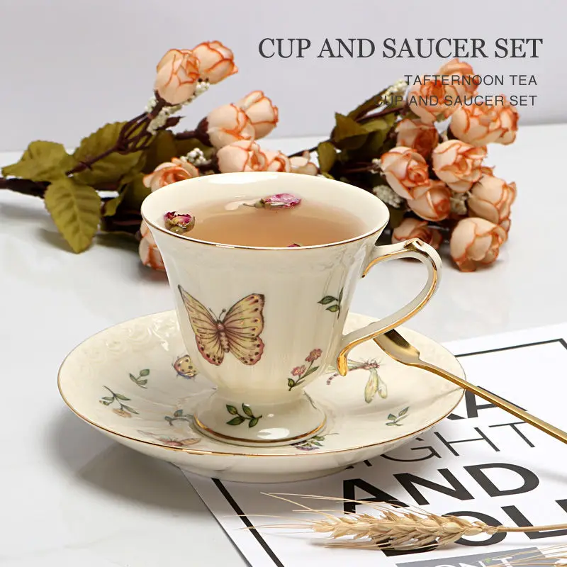 Кофейная чашка с блюдцем и бабочкой в стиле ретро, керамическая чайная чашка, роскошные чашки для послеобеденного чая, домашний набор, чашки...