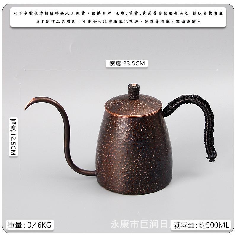 Кофейник ручной работы из чистой меди, узкий горшок из красной меди, ручная мойка, милый чайник для кемпинга, чайник для заваривания чая 500ML Antique-style Coffe