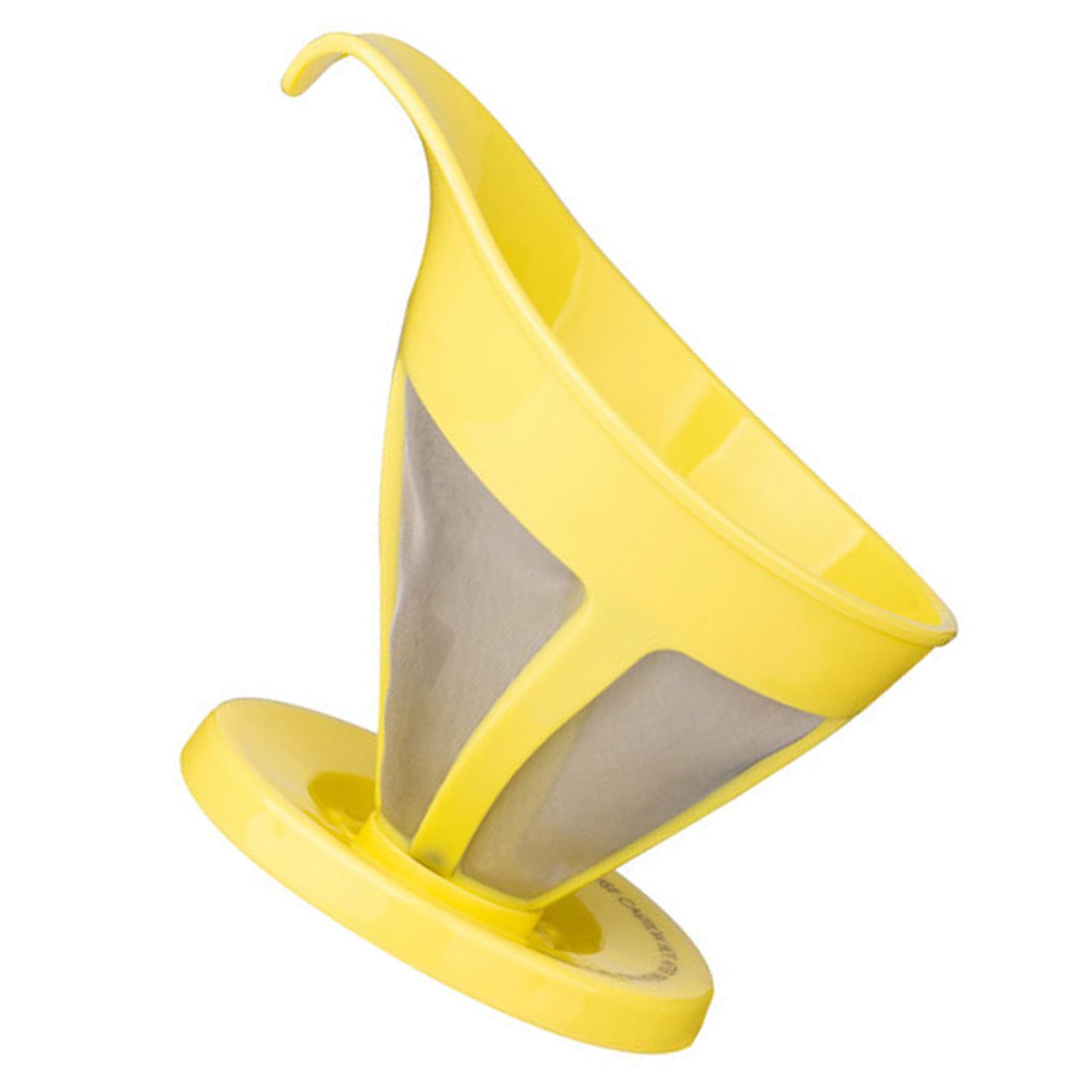 Кофейный фильтр с изогнутой ручкой Ручной фильтр для капельного кофе из нержавеющей стали с мелкой сеткой Воронка для приготовления Кафе Кухонные гаджеты жёлтый