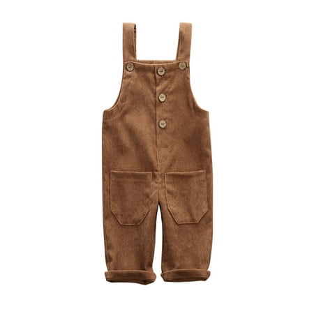Toddler Baby Boy Girl Corduroy Suspender Rompers Solid Adjustable Strap Pockets Overalls Spring Autumn Button Down Trousers