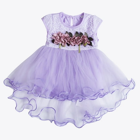 Baby Girls TuTu Dress Short Sleeve Back Button Ruffle Hem Mesh Multi-Layer Dress