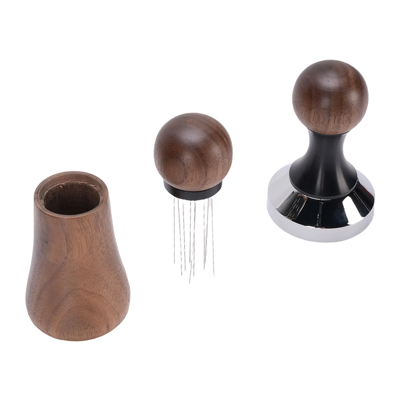 Кофемолоток Темпер для кофе Игольчатый тип Распределитель кофе Из нержавеющей стали Ореховое дерево Темпер для кофе для принадлежностей кофемашины