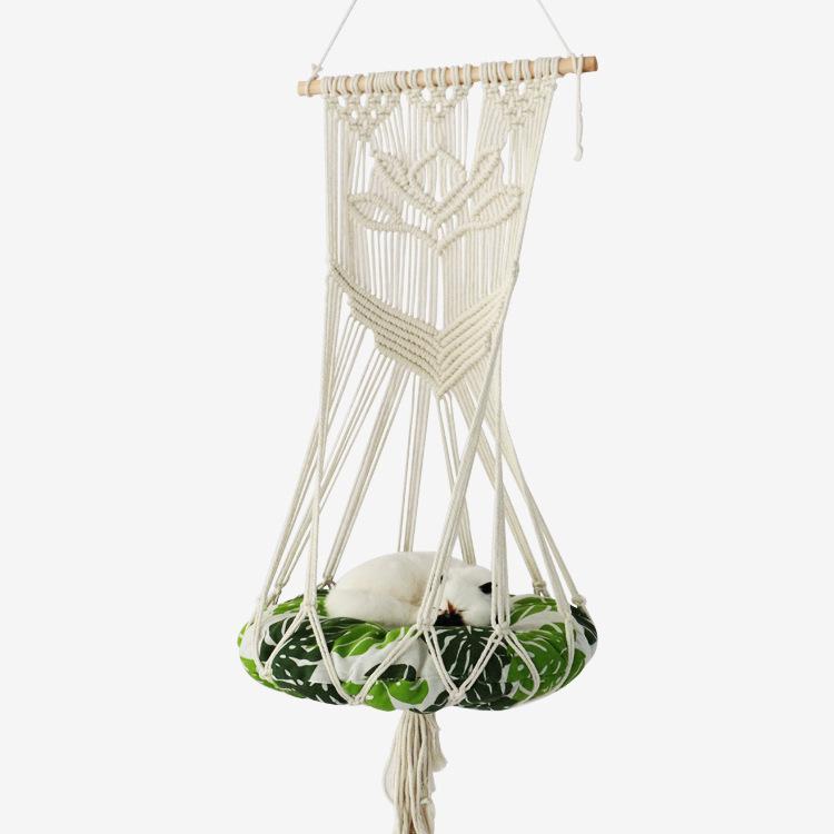 Кошачья кровать Кошачий гамак Макраме Кошачья качели Кровать Кошачья клетка Хлопковая веревка Подвесной домик для кошек Игрушка для кошек Корзина с кисточками Гобелен зелёный