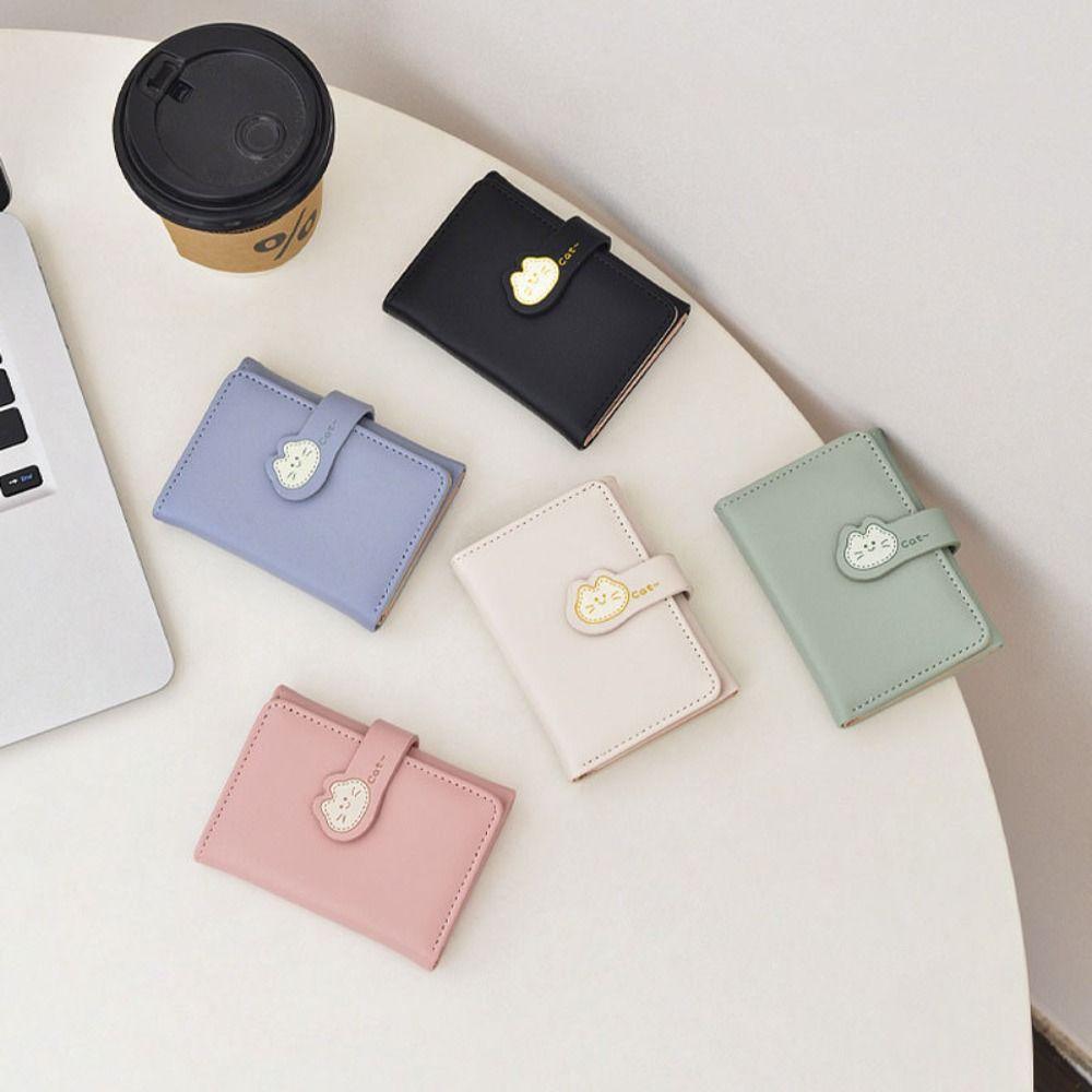 Кошелек для монет с несколькими отделениями для карт в корейском стиле, симпатичная сумка для карт, сумка для мелочи, мультяшный кот, короткий кошелек для улицы чёрный
