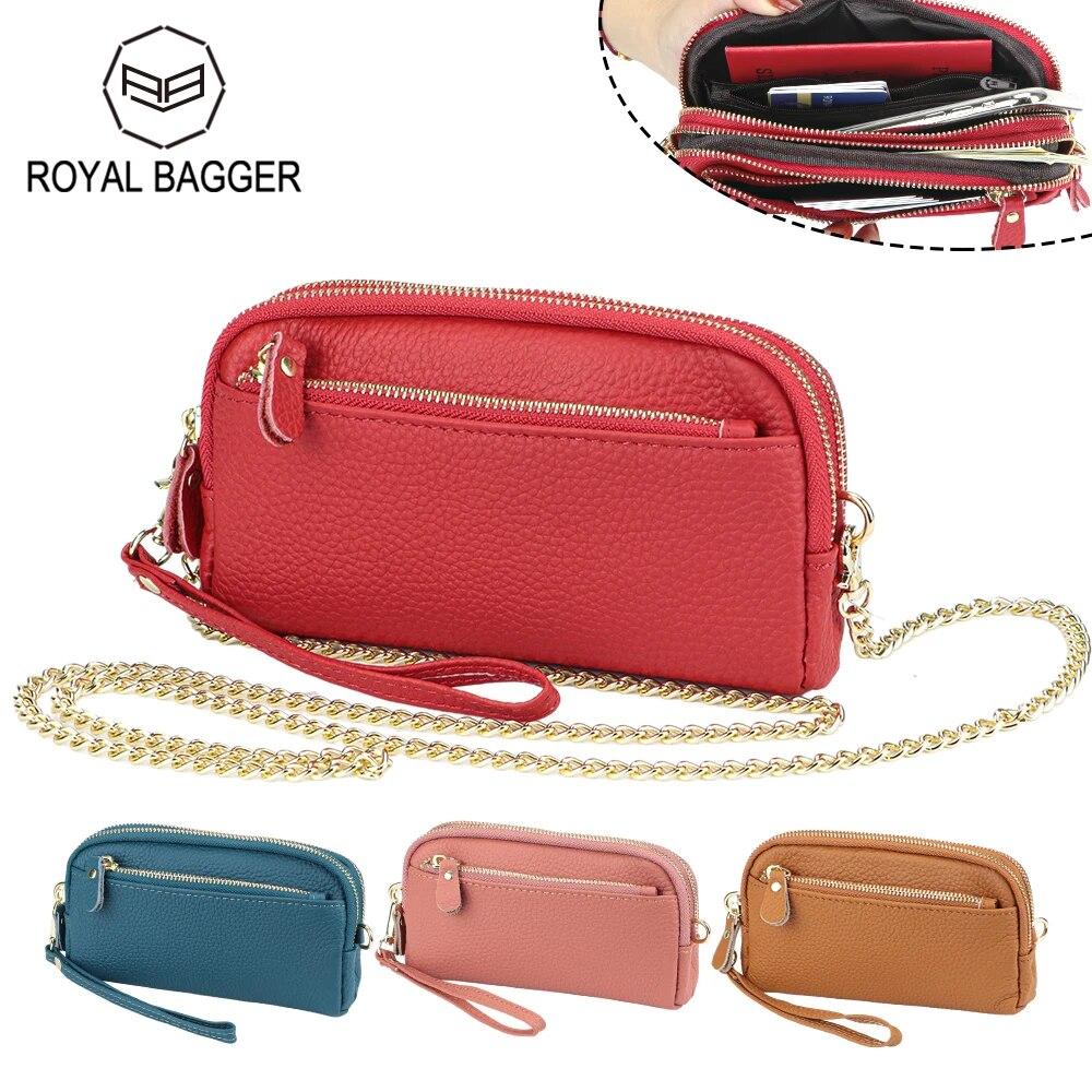 Кошелек-клатч Royal Bagger для женщин, натуральная коровья кожа, большие кошельки на молнии, модная сумка через плечо с цепочкой 1571 чёрный