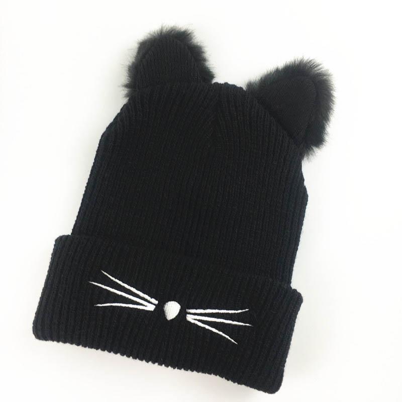 Кошка Распродажа Горячие Ушки Женская Шапка Вязаная Акриловая Теплая Зимняя Шапка Бини Модные Шапки Black