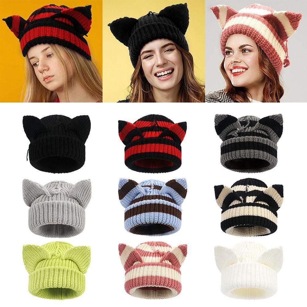 Кошка Ушки Вязаная Шапка Теплая Череп Шапка Милые Шапки-Бини Шляпы Для Женщин