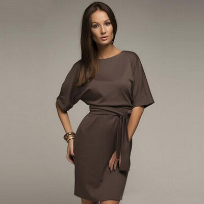 Lovaru ™Женщины Лето вскользь круглый воротник рукавом Половина Мини Твердые Карандаш Управление платье носить платья Бизнес