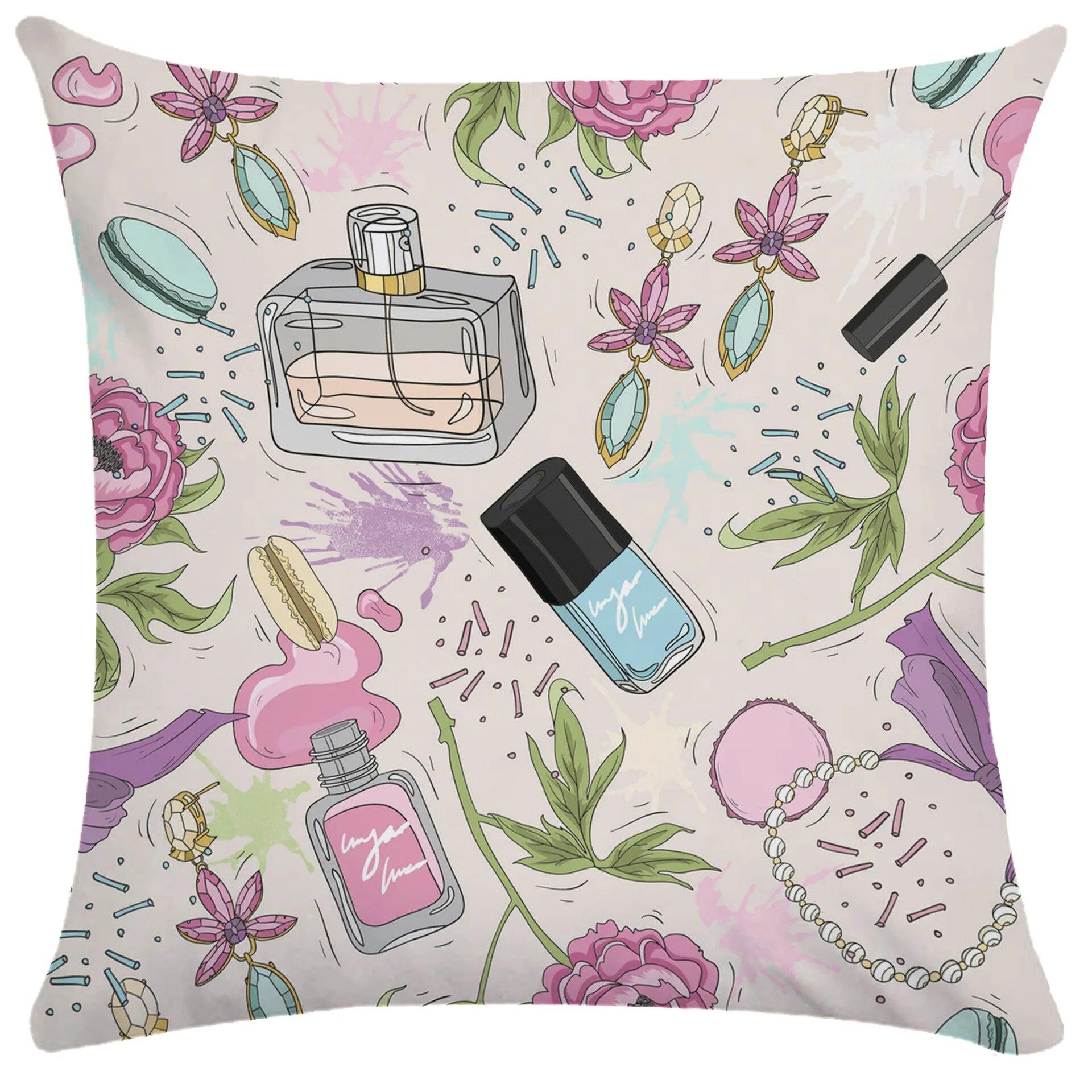 Красивая красочная губная помада, парфюмерная наволочка, комната для девочек, милый диван-кровать, гостиная 40x40cm