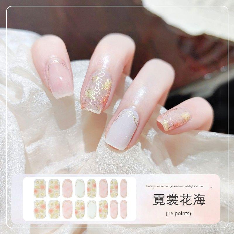 Красивая обложка УФ-наклейка для ногтей Ледопроницаемая наклейка-бабочка Ноготь Водонепроницаемая Жемчужная лента Полузапеченный гель Наклейки для ногтей второго поколения Sea of Flowers