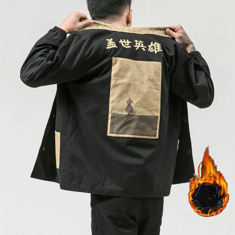 Красивая осенне-зимняя мужская уличная хлопковая куртка в японском стиле с героем каньцзи, черная красная толстая куртка в стиле хип-хоп, же...