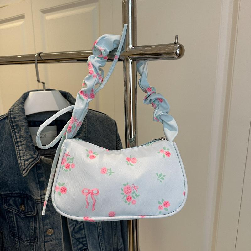 Красивая и свежая, популярная летом, легкий дизайн, нишевая портативная плиссированная сумка, цветочная сумка через плечо подмышку для женщин синий