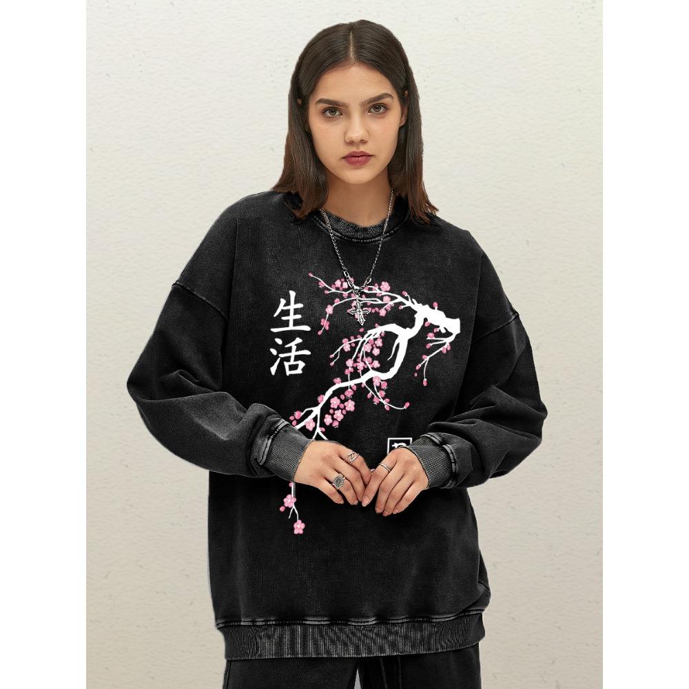 Красивые Цветы В Принте Жизни Женский Выстиранный Свитшот Хлопок Осенняя Одежда Женская Мода Свободный Пуловер С Круглым Вырезом Уличная Одежда 2XL