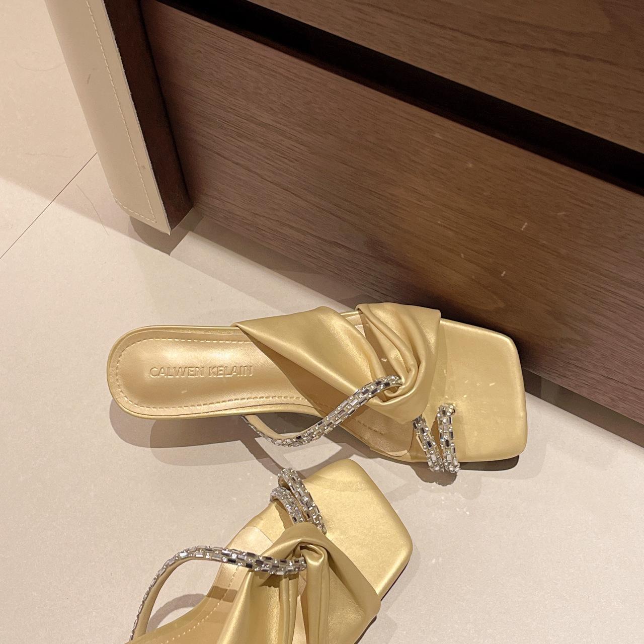 Красивые сандалии в стиле феи, интернет-знаменитость, французские шлепанцы со стразами с перемычкой между пальцами, женская летняя обувь 2025, новый темперамент с юбкой 40 жёлтый