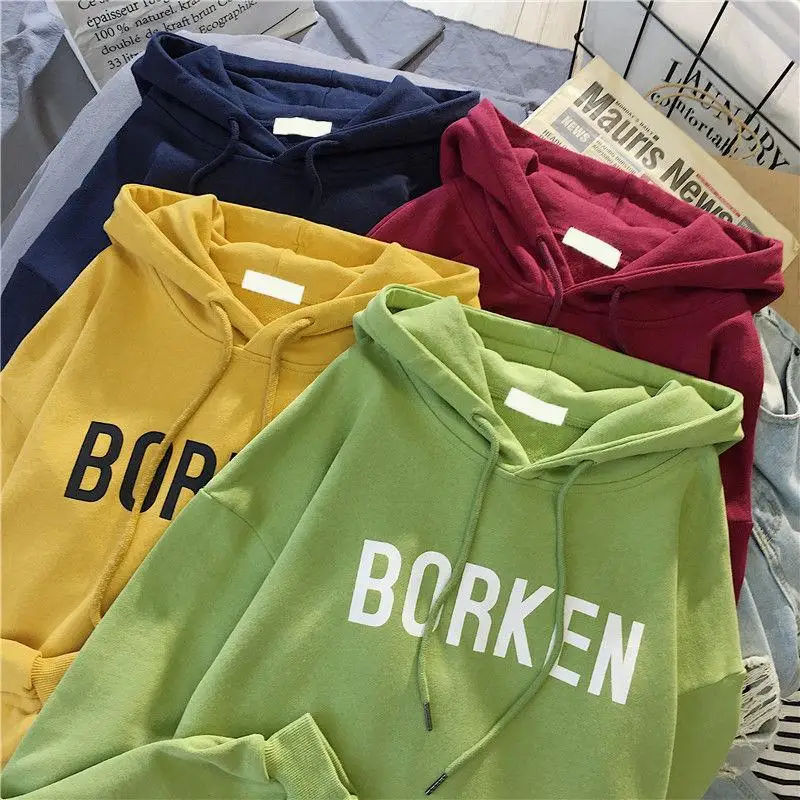 New Winter Warm Plus Velvet Ladies Printed Letters Student Sweatshirt Casual Loose Hooded Sweatshirt Women