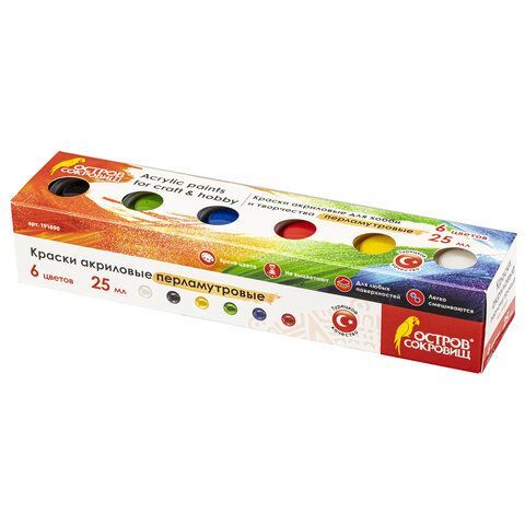 Краски акриловые 1шт./6 цветов, разноцветный, 25мл, блок-тара, перламутровые, ОСТРОВ СОКРОВИЩ (191690), нет данных